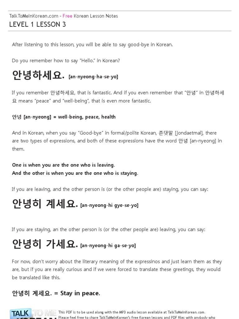 Talk To Me In Korean Level 1 Lesson 3 Pdf